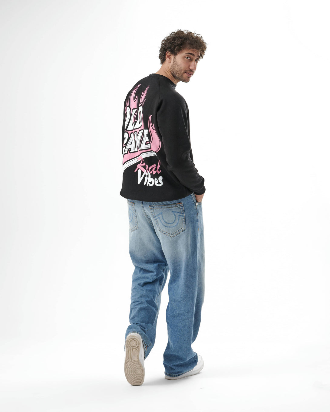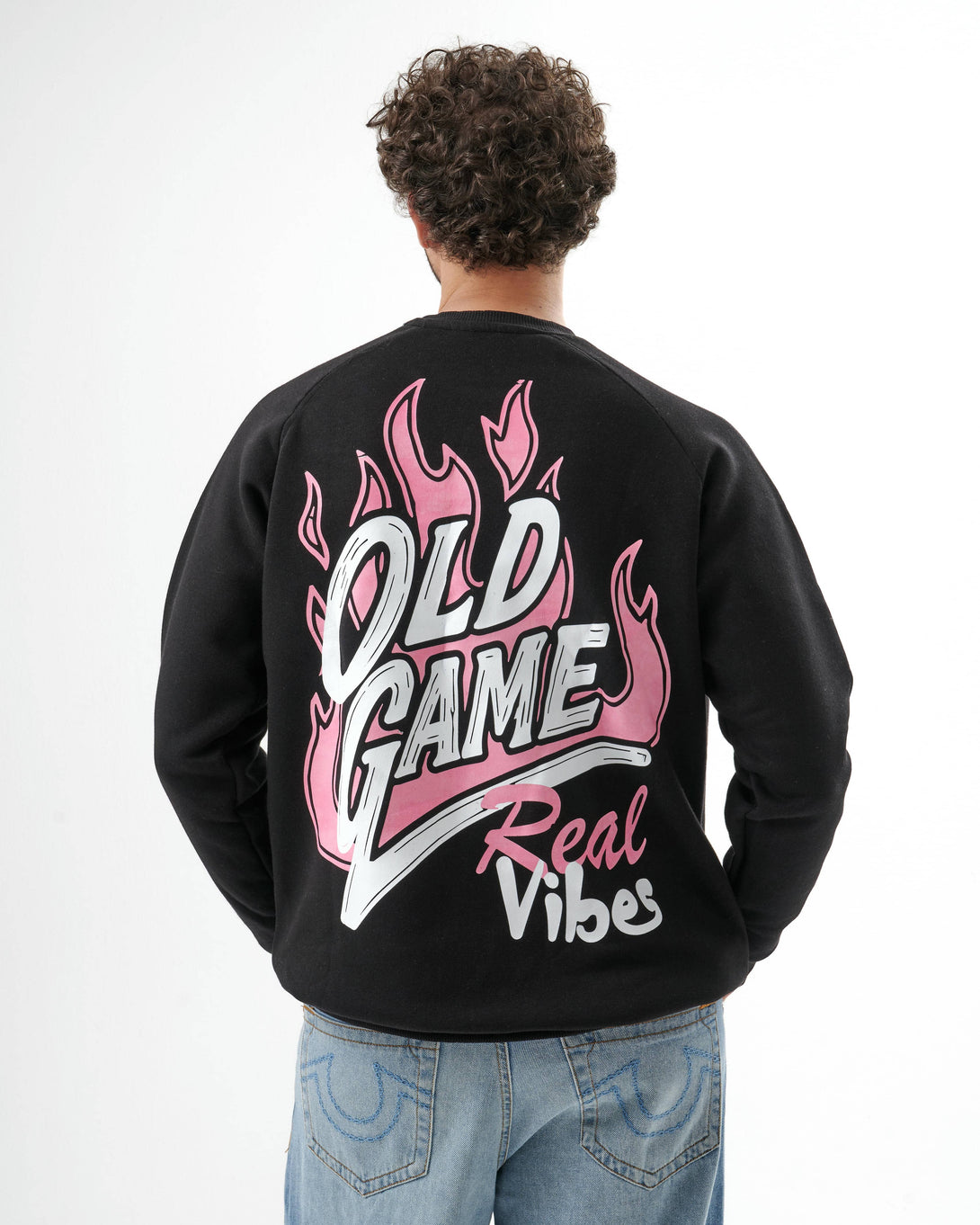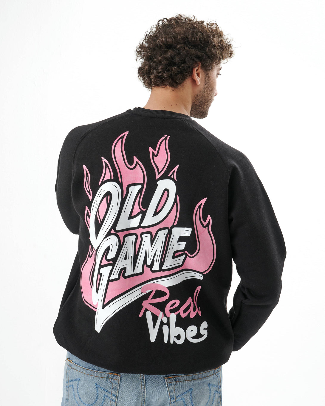 Black sweatshirt with a bold back print featuring the phrase “OLD GAME – Real Vibes” in vibrant colors. Made from soft, high-quality fabric that provides warmth and comfort. A stylish casual piece perfect for everyday wear.