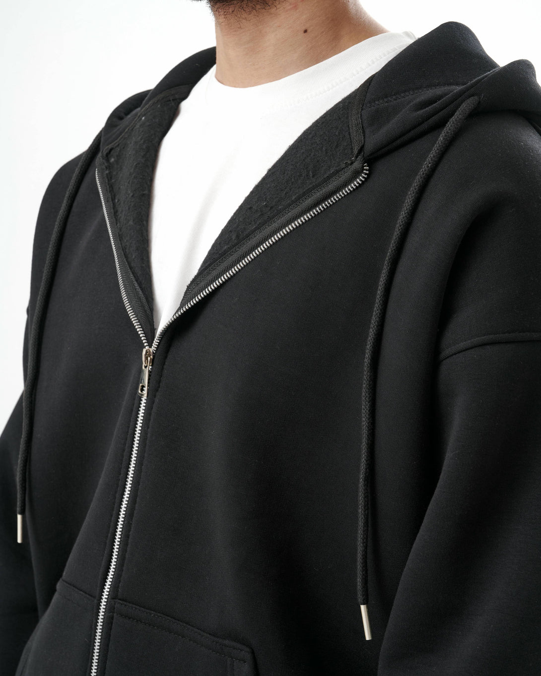Contrast double fur hood.